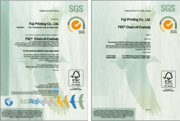 富士印刷(株)では、FSC®森林認証(ライセンス番号:FSC-C134878)を取得、正しく運用することで、自然環境を守る活動に貢献しています。